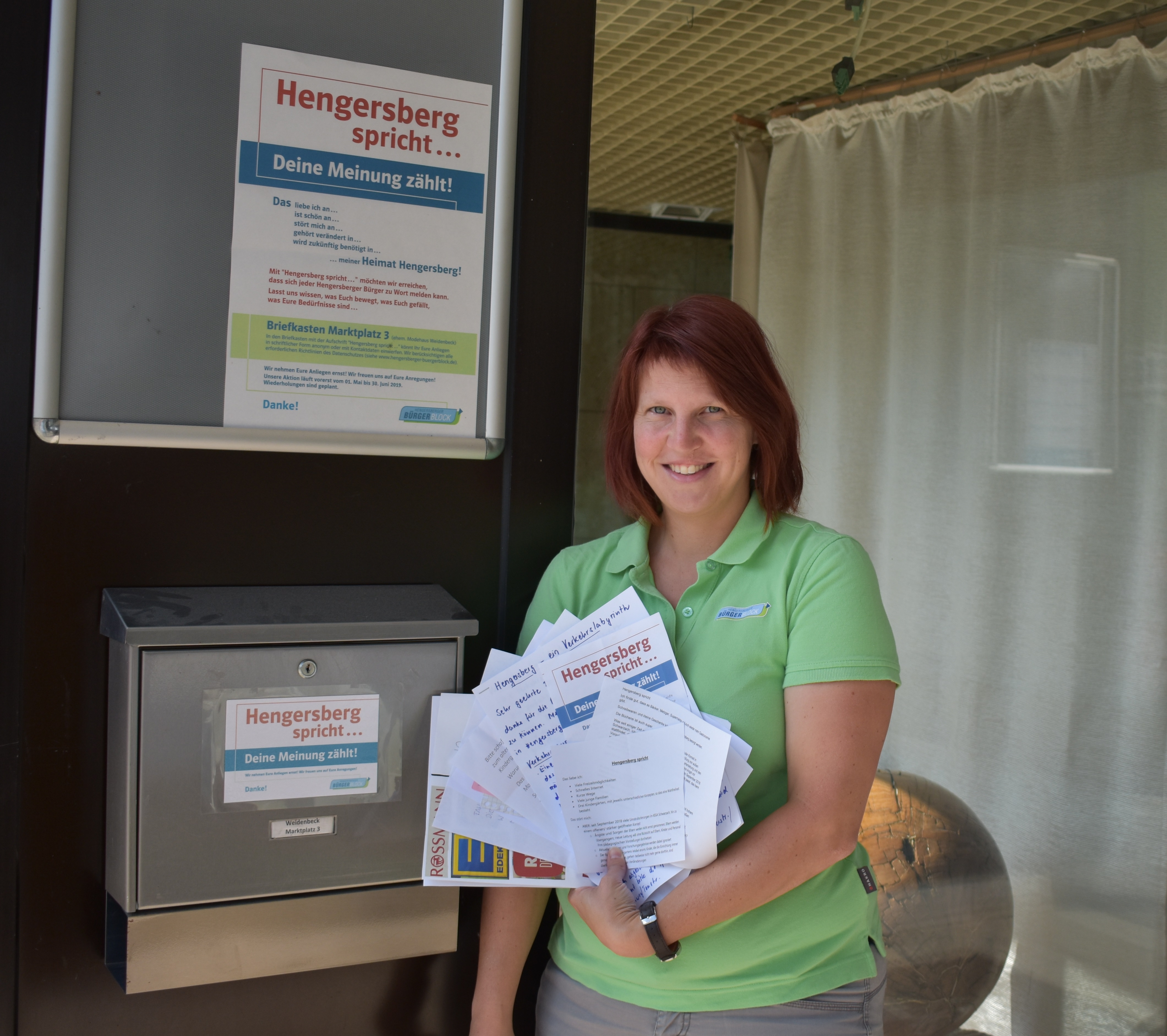 „Die Idee mit dem Bürgerbriefkasten ist wirklich sehr gut“, schrieb ein Bürger der Marktgemeinde als Rückmeldung auf die Aktion „Hengersberg spricht“. Mit der Aktion wollte der HBB erreichen, dass sich jeder Bürger zu Wort melden kann, was er an Hengersberg liebt, was in Hengersberg schön ist, was stört, was verändert gehört oder zukünftig benötigt wird. Um die Anliegen und Meinungen zu sammeln, wurde am Marktplatz ein Briefkasten eingerichtet. Die zweimonatige Aktion wurde sehr gut angenommen, in mehreren hundert Positionen wurde sowohl Lob als auch Kritik geäußert.